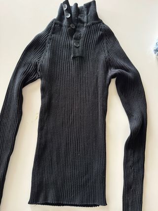 Maglione da uomo a costine con collo alto e chiusura a bottoni. - Tessuto a costine. - Collo alto con bottoni. - Maniche lunghe.
