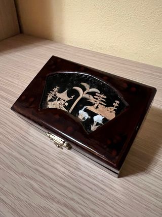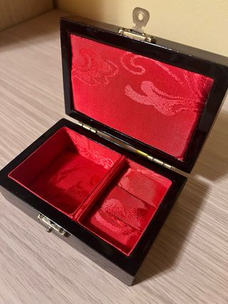 Elegante scatola in legno laccato, perfetta per custodire i tuoi gioielli. - Decorazione in stile giapponese con dettagli. - Chiusura a scatto dorata.