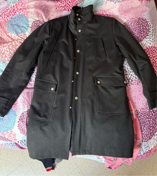 Elegante cappotto Zara di colore nero, perfetto per completare il tuo look. - Chiusura con bottoni a vista. - Tasche frontali con patta e bottone. - Collo alto con chiusura a bottone. - Design moderno e versatile. cappuccio rimovibile