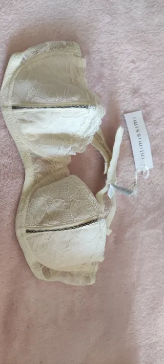 Bellissimo reggiseno Intimissimi a fascia in pizzo panna perfetto per un tocco di eleganza. Taglia 3 nuovo con cartellino In regalo coordinato perizoma nuovo senza cartellino sempre taglia 3