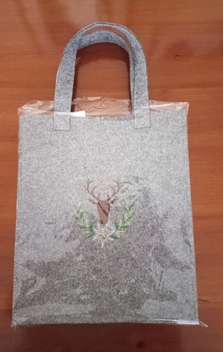 Borsa in lana cotta, un accessorio versatile e resistente. - Materiale: lana cotta. - Design unico. - bel disegno di cervo e stella alpina. Dim. l=30 h=35 s=9 cm Lung. manici 43 cm