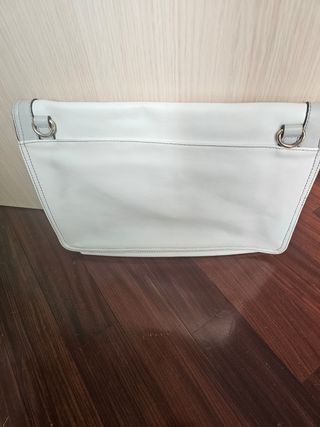 a tracolla o come pochette xl. color bianco/lilla. spaziosa e molto morbida.completa di dust bag