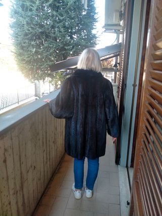 Elegante cappotto in finta pelliccia, perfetto per le giornate più fredde. Il capo è reversibile, offrendo due look in uno. - Materiale morbido e caldo. - Design con cappuccio bordato in pelliccia sintetica . - Chiusura frontale con cerniera e bottoni - Due tasche laterali con zip. - Misure ultime fotografie . - Nuovo