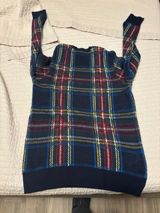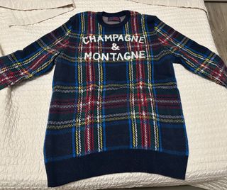 Maglione a fantasia tartan con scritte. - Design a quadri. - Scritta CHAMPAGNE & MONTAGNE sul davanti. - Girocollo.