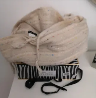 Sciarpa in lana con dettagli colorati e fili scintillanti. - Morbida al tatto - Design unico