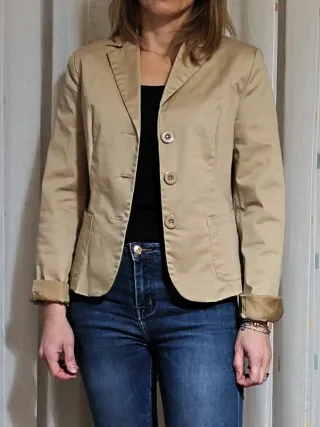 Giacca da donna in un elegante colore beige. Un capo versatile per completare il tuo look. - Chiusura con bottoni. - Tasche frontali. - Maniche lunghe con risvolto.