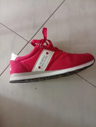 Scarpe sportive da donna Marina Militare. - Colore rosso vivace. - Taglia 37. - Dettagli a contrasto bianco e argento.
