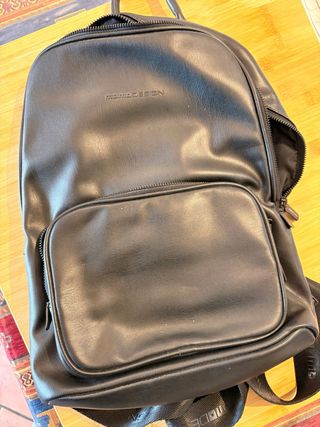 Zaino in similpelle nera con logo inciso. - Design moderno e funzionale. - Tasca frontale con zip. - Spallacci regolabili.