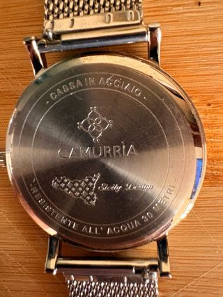 Elegante orologio Camurria con cassa argentata e quadrante bianco. Il diametro della cassa è di 4 cm. - Design con simbolo Trinacria. - Cinturino in maglia milanese argentata. - Indicazioni Sicily e Design sul quadrante.