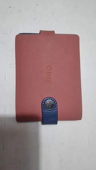 Portafoglio O bag con chiusura a bottone. - Materiale esterno rosso - Dettagli e chiusura blu. Cover esterna intercambiabile