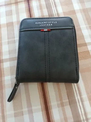 Cartera de estilo ZUOLAIWT LEATHER para hombre. - Diseño moderno con costuras. - Cierre de cremallera. - Detalle de tres tiras verticales (roja, blanca, roja).