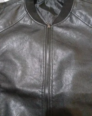 Giubbotto stile bomber in ecopelle. - Chiusura con zip frontale. - Collo e fondo a costine. - Tasche laterali. - Dettagli trapuntati sulle spalle.
