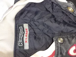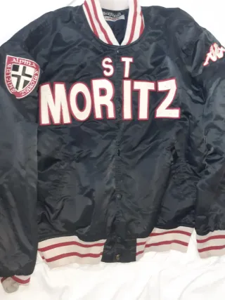 Giacca stile varsity vintage con logo St. Moritz. - Patch Alpina Ski Club St. Moritz sul petto. - Logo Kappa sulle maniche. - Colletto e polsini a righe rosse e bianche.