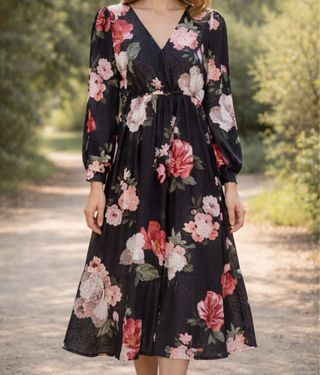 Vestito floreale maniche lunghe scollo V
