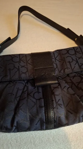 Borsa Calvin Klein Originale con logo all-over Tessuto resistente Dettagli in pelle Chiusura con calamita Misure 30x15 cm circa