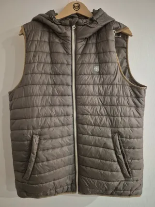 Gilet imbottito con cappuccio, perfetto per aggiungere uno strato extra di calore. - Chiusura con zip frontale. - Tasche laterali. - Cappuccio con cordino regolabile. - Finitura in contrasto.