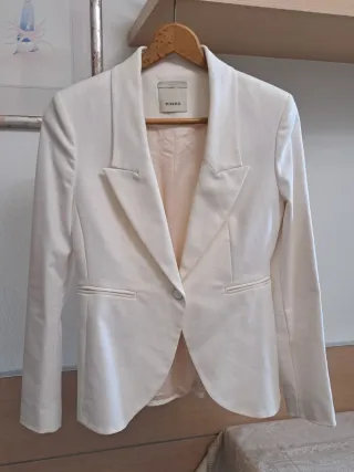 Elegante giacca Pinko color panna, perfetta per completare ogni outfit. - Taglio sartoriale. - Chiusura con bottone singolo. - Tasche a filetto. - Fodera interna in contrasto, rosa pallido.Giacca donna bianco panna - Brand Pinko - Molto elegante, taglio sciancrato. Taglia 44(IT), ma veste poco, indossata e' piuttosto piccola, piu' vicina a una 42. Praticamente nuova.