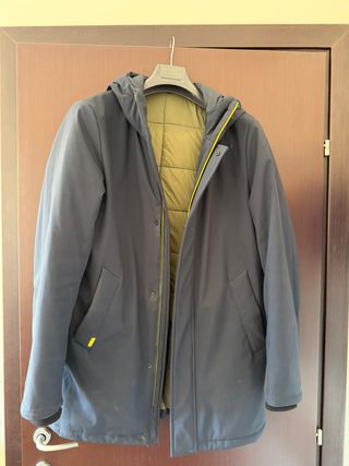Giubbotto Alessandro Gilles con un design moderno e versatile. La fodera interna è di colore verde acceso con dettagli gialli. - Chiusura frontale con zip. - Cappuccio integrato. - Tasche laterali. - Polsini a costine.