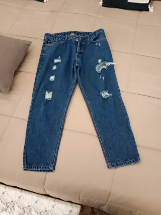 Jeans da uomo in denim, modello strappato. - Vestibilità comoda. - Dettagli strappati sulle gambe. - Chiusura con bottoni.