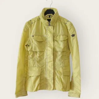 Giacca in pelle con collo alto e cerniere ai polsi. Nessuna imperfezione. Ascella-ascella 50 Lunghezza 60 Spalle 42 Maniche 63 Vestibilità L.