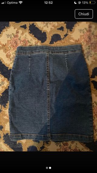 Gonna in denim, nuova. - Chiusura con zip frontale. - Tasche applicate sul davanti.