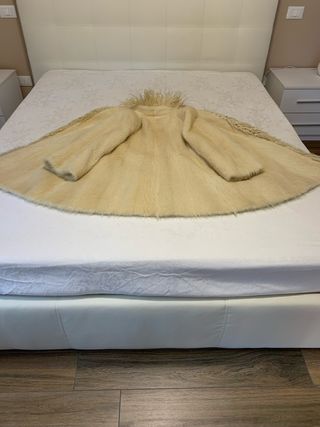 Elegante cappotto in castorino spiz e mongolia. Un capo unico per un look sofisticato, ha bisogno di una cucitura nel retro del capo. - Taglia unica. - Colore beige e bianco.