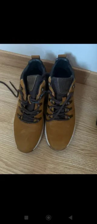 Scarpe Lumberjack da uomo. - Tomaia in materiale scamosciato marrone. - Dettagli in pelle marrone scuro. - Suola bianca e marrone.