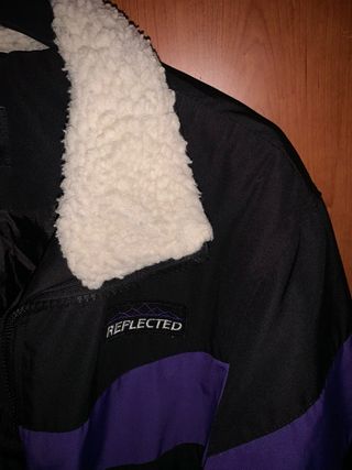 Giubbotto con un design moderno e dettagli curati. - Colletto in pile bianco. - Patch REFLECTED sul petto. - Inserti viola a contrasto.