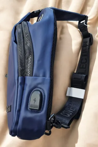 Tracolla monospalla in tessuto resistente. Design moderno e pratico. - Tasca frontale con zip. - Logo in rilievo sul davanti. - Tracolla regolabile