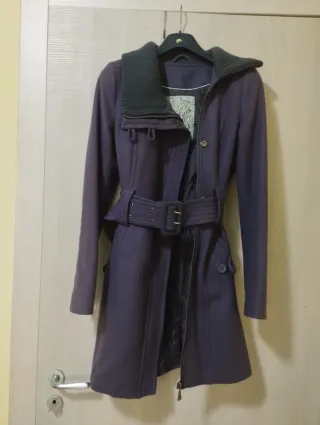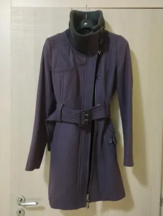 Elegante giacca invernale da donna, perfetta per le giornate più fredde. - Colletto alto con lavorazione a coste. - Cintura in vita con fibbia per un fit personalizzato. - Chiusura frontale con zip e bottoni. - Tasche laterali con patta e bottone.