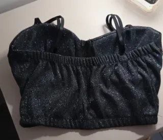 Top con un design laminato che cattura la luce. - Tessuto scintillante. - Spalline sottili. - Elastico in vita per una vestibilità comoda.