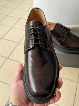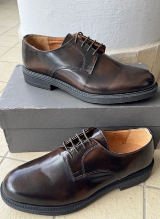 Eleganti scarpe Oxford da uomo, perfette per completare un look formale o casual. - Design classico Oxford. - Tomaia in pelle lucida con sfumature. - Chiusura con lacci. - Suola robusta in gomma.