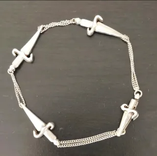 Elegante bracciale vintage Cesare Paciotti. - Realizzato in Argento 925. - Chiusura a scomparsa. - Design con pendenti a forma di daga. - Lunghezza 20.5 centimetri. A disposizione per informazioni.