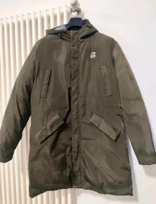 Giubbotto Pesante K Way Taglia XL Verde Militare. Negoziabile!!!! Presenta alcuni aloni e piccola scucitura (non visibile) come da foto. Regolabile in vita. Distanza spalle 50 Distanza ascelle 63 Lunghezza 93 A disposizione per informazione. - Taglia XL - Logo K-Way sul petto - Zip frontale con dettagli colorati - Cappuccio integrato