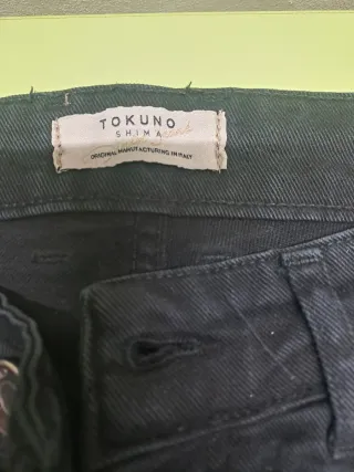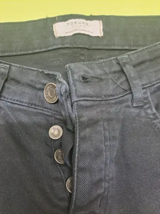 Pantaloni neri con chiusura a bottoni. - Chiusura con bottoni. - Tessuto resistente.