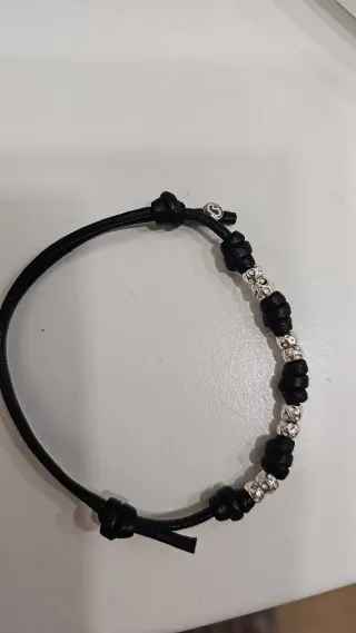 Elegante bracciale Dodo con cordino nero e granelle in argento. - Chiusura regolabile con nodi. - Dettagli in argento lucido.