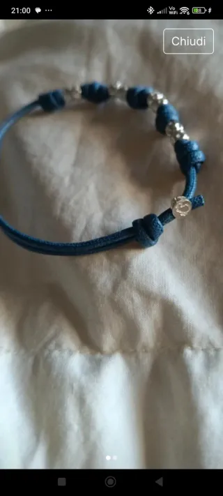 Elegante bracciale Dodo con cordino blu e granelle in argento.nuovo mai indossato - Granelle in argento. - Chiusura regolabile.