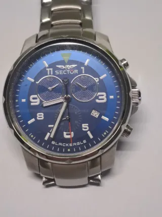 Orologio Sector Black Eagle con quadrante blu e cinturino in acciaio. - Modello cronografo. - Dettagli color oro sul quadrante. - Indicatore data.