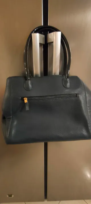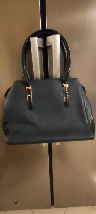 Elegante borsa da donna. - Dettagli color oro. - Manici lucidi neri.