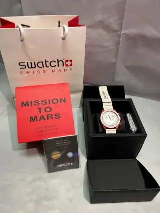 Orologio Swatch x Omega Mission to Mars. - Cassa in bioceramica. - Cinturino in velcro. - Scatola originale inclusa. - Documentazione originale inclusa.
