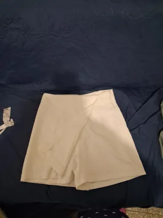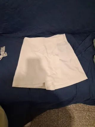 Pantaloncino bianco con design a portafoglio. - Tessuto leggero e confortevole. - Vita alta. - Chiusura con bottone e zip nascosta.