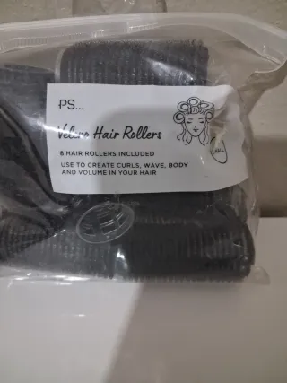 Set di 8 bigodini in velcro neri. - Ideali per creare ricci, onde e volume. - Facili da usare e riutilizzabili.