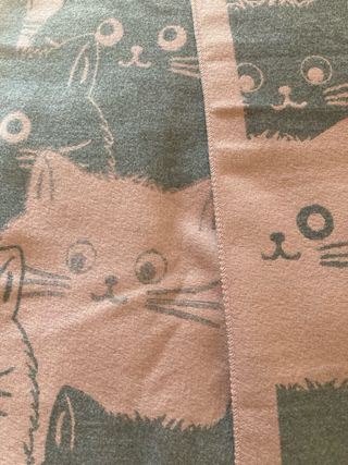 Elegante foulard con stampa di gatti su entrambi i lati. Un accessorio divertente e alla moda. - Design double-face. - Stampa di gatti. - Colori: grigio e rosa. - larghezza 65 cm. - lunghezza 180 cm. - regalo non utilizzato.