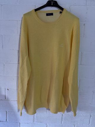 Maglione girocollo da uomo Gant in un vivace color giallo. Realizzato in maglia a nido d'ape, offre un look casual ma curato. - Logo ricamato sul petto. - Maniche lunghe. - Orlo e polsini a costine.
