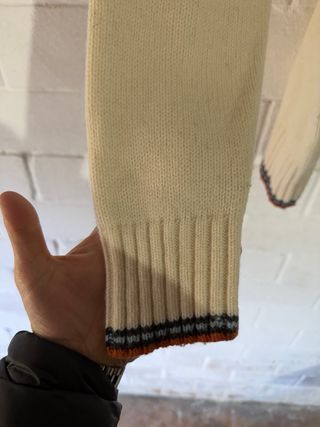 Felpa Moncler originale, colore bianco, taglia XL. Modello girocollo in tessuto morbido e confortevole, ideale per un look casual ed elegante. Patch Moncler nera applicata sul petto che rende il capo distintivo e raffinato. Ottima vestibilità e qualità dei materiali tipica del brand.unica cosa c'è un piccolo buco vicino al logo. Taglia: XL Condizioni: ottime Modello girocollo Perfetta per tutte le stagioni