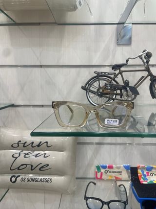 Occhiali da vista OS Sunglasses color beige. - Montatura in acetato trasparente. - Lenti con protezione Blue Light per ridurre l'affaticamento visivo. - Design moderno e unisex.