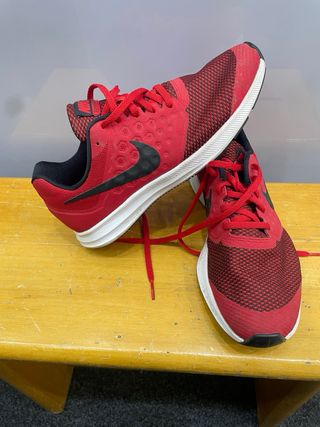 Scarpe sportive da donna Nike. - Tomaia in mesh traspirante. - Dettagli rossi e neri. - Suola bianca.