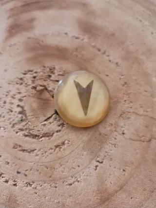 Spilla rotonda vintage in resina con un elegante inserto dorato al centro. - Design unico. - Materiale: resina e metallo.