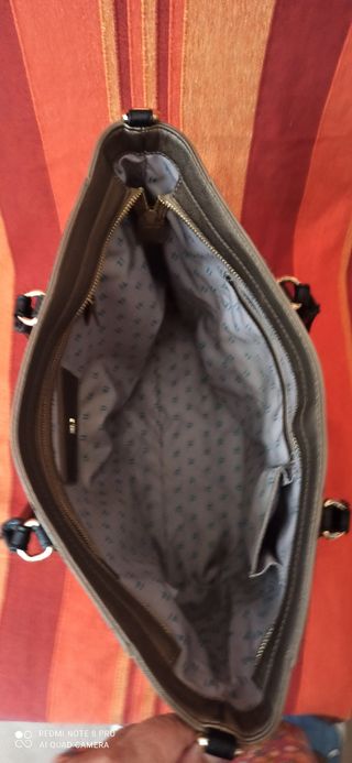 Molto capiente: ha tre scomparti grandi più due tasche esterne con cerniere. È in ottime condizioni, non presenta macchie o segni di usura.
