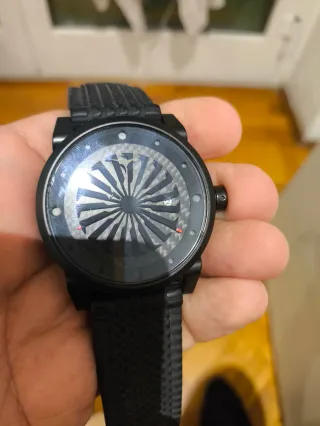 Elegante orologio Zivno Blade con un design distintivo. - Cassa in metallo nero. - Quadrante con motivo a raggiera. - Cinturino in gomma nero testurizzato. - Dettagli argentati sul quadrante.